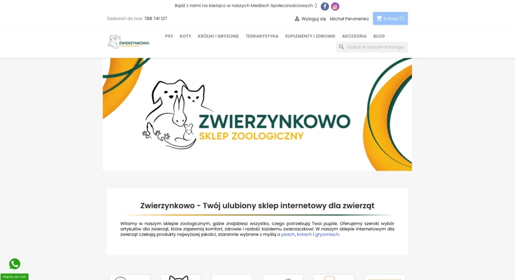 Pracowałem dla różnych branż – od lokalnych gabinetów po marki z produktami premium. Jednym z przykładów jest zwierzynkowo.pl, sklep internetowy z produktami vet, w którym wdrożyłem katalog produktów dla zwierząt wraz z panelem blogowym i przejrzystym systemem prezentacji treści. Całość została zaprojektowana tak, by maksymalnie uprościć zakupy i zachęcić do powrotu na stronę.